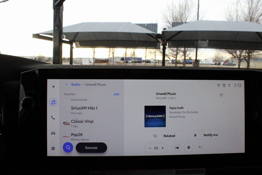 - Radio: 12.3" Toyota Audio Multimedia -inc: touchscreen, USB-A media port, hands-free phone capability and music streaming via Bluetooth wireless technology, SiriusXM 3-month trial subscription, 6-speaker audio system, wireless Apple CarPlay compatibility and wireless Android Auto compatibility