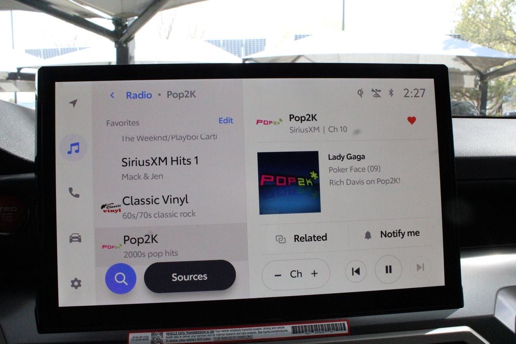 - Radio: 8" Toyota Audio Multimedia -inc: touchscreen, 6 speakers, wireless Apple CarPlay and Android Auto compatibility and SiriusXM w/3-month Platinum Plan trial subscription, See toyota.com/audio-multimedia for details