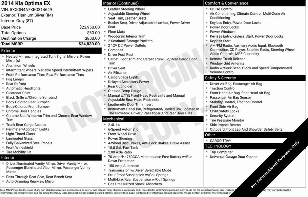 - Vehicle Name: Kia Optima