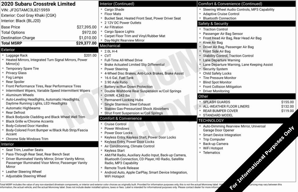 - Vehicle Name: Subaru Crosstrek
